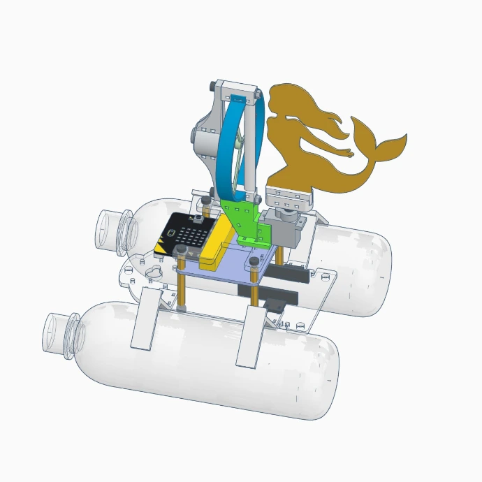 Students test the BottleBoat with the standard rudder, then use Tinkercad to design and 3D-print their own rudder shapes and compare how each design changes the way the boat turns and moves.